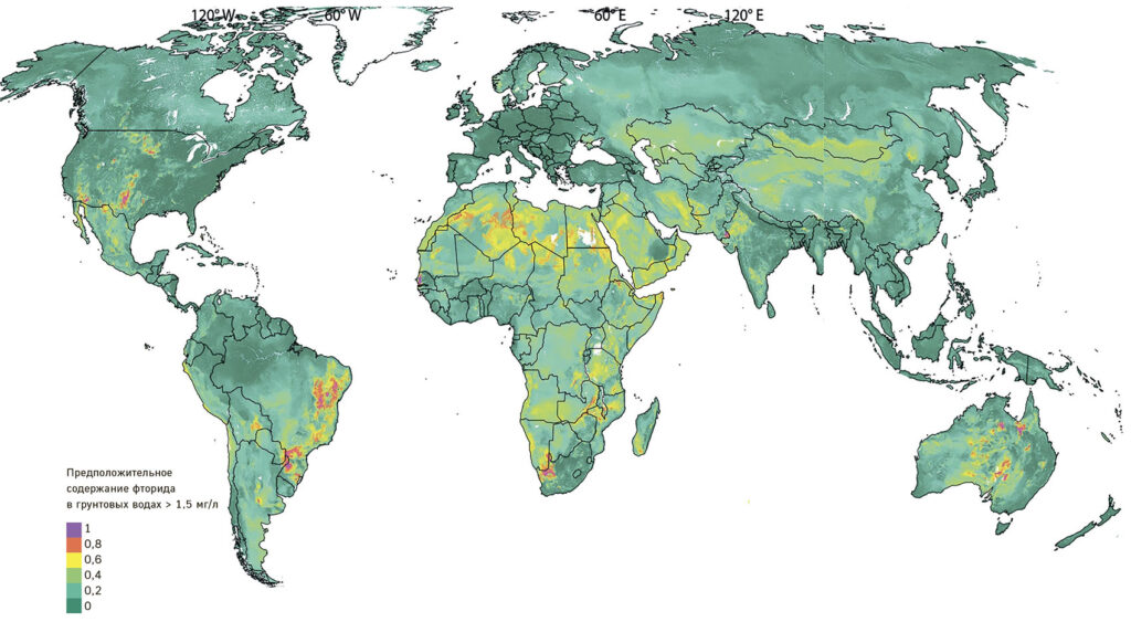 В основном этому заболеванию подвержены дети в возрасте 6–8 лет с появлением зубов постоянного прикуса и проживающие в местности, где в питьевой воде переизбыток содержания фторидов. География и эпидемиология флюороза полностью между собой коррелируют. Фтор в водопроводной воде — это следствие природного залегания его соединений в грунтах. Если открыть карту с отмеченными фтористыми поясами — такой документ существует, например, у Всемирной организации здравоохранения, — становится понятно: очаги флюороза неравномерны, но устойчивы и вполне предсказуемы.