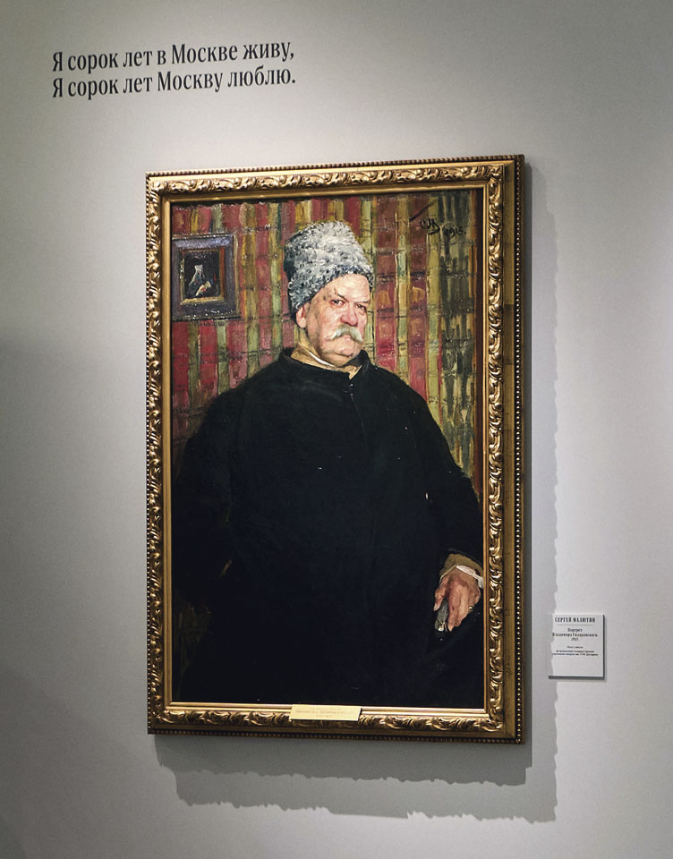 — Я хотела бы вновь отметить со­поставление «Портрета Владимира Гиляровского» Сергея Малютина и картины «Москва. Синтетический город» Александры Экстер. Эти рабо­ты были написаны с разницей в один год, причем реалистический портрет был написан в 1915-м, а кубофуту­ристическая композиция — в 1914-м. Но будто бы между ними разница в десятилетия! Эта эпоха второй по­ловины XIX — первой трети ХХ века была одной из самых турбулентных в изобразительном искусстве, когда работали и выставлялись любимые Гиляровским передвижники, а в Мо­сковском училище живописи, ваяния и зодчества у «умеренных» новаторов занимались будущие авангардисты, декаденты и футуристы.