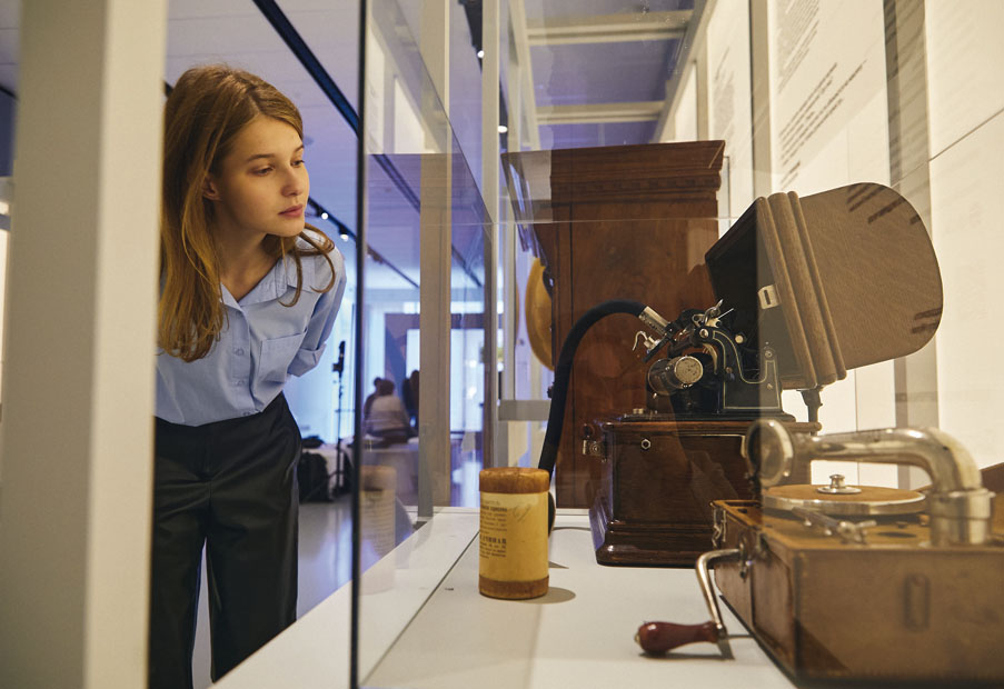 • На верхнем уровне (3-й этаж) — интерактивный технологический блок: спецпроект «Пространство технологий» с технологическими но­винками конца XIX — начала XX века: телефоном Белла, фонографом Эди­сона, свечой Яблочкова, телеграфным аппаратом системы Ухина, фотоап­паратами «Кодак», типографскими литерами — всем, что в те времена воспринималось как чудеса новой эпохи. Эти артефакты предоставлены Политехническим музеем. Увидеть, как технологии меняют быт, отдых и работу в наши дни, позволит про­странство от нейросети Алиса и ум­ных устройств «Яндекса».