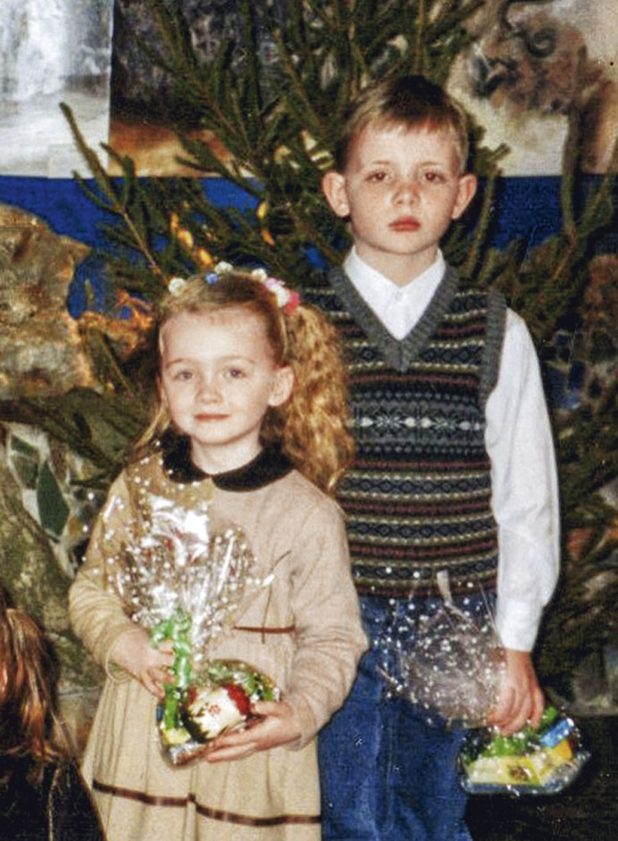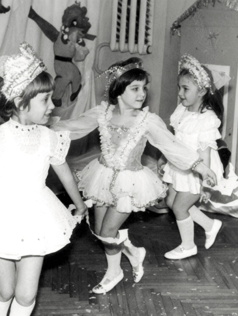 Однажды мы пошли на елку в Дом культуры, где выступала моя сестра. На меня надели очень модный, но ужасно колючий свитер из материала, похожего на мишуру. Всем было весело: хороводы, конфеты, праздничная атмосфера, а я все время чесалась из за свитера и хотела уйти. На фото с сестрой я почти в истерике.