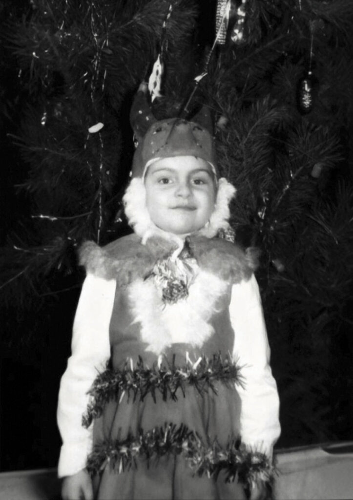 Мне вспоминается запах мандаринов и искусственная елка с разноцветным дождиком, которая стоит на табурете и укрыта белой простыней, имитирующей снег. Мне нравилось лечь спать пораньше, чтобы 1 января с первыми лучами солнца найти под елкой подарки от Деда Мороза. Предвкушение праздника появлялось, когда выпадал первый снег. Родители предлагали нарядить елку пораньше, доставали с антресоли коробку со старыми советскими стеклянными игрушками: шарами, фонариками, сказочными персонажами.