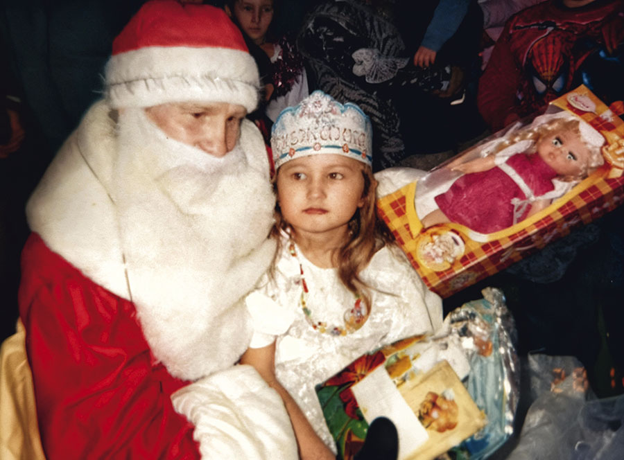 Когда мне было четыре года, Дед Мороз на утреннике подарил мне куклу. Сначала я сильно расстроилась: «Зачем она мне, если я с ними не играю?» Я злилась до самого дома, поэтому на всех фотографиях с той елки у меня недовольное лицо и нахмуренные брови. Но когда я распаковала подарок, кукла так мне понравилась, что я играла с ней многие годы.