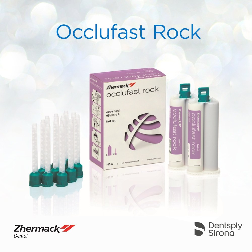 А-силикон Occlufast Rock удобен в работе и обеспечивает высокую точность регистрации: его консистенция почти не ощущается пациентом, материал быстро твердеет, а также обладает высокой прочностью после полимеризации.