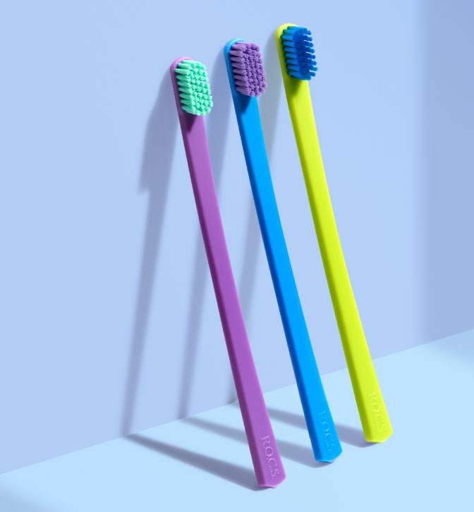 Ручки зубных щеток R.O.C.S. производятся из медицинского пластика PET-G — современного материала, применяемого в том числе при производстве медицинских изделий, не содержат в составе бисфенол-А, что подтверждается лабораторными исследованиями.
