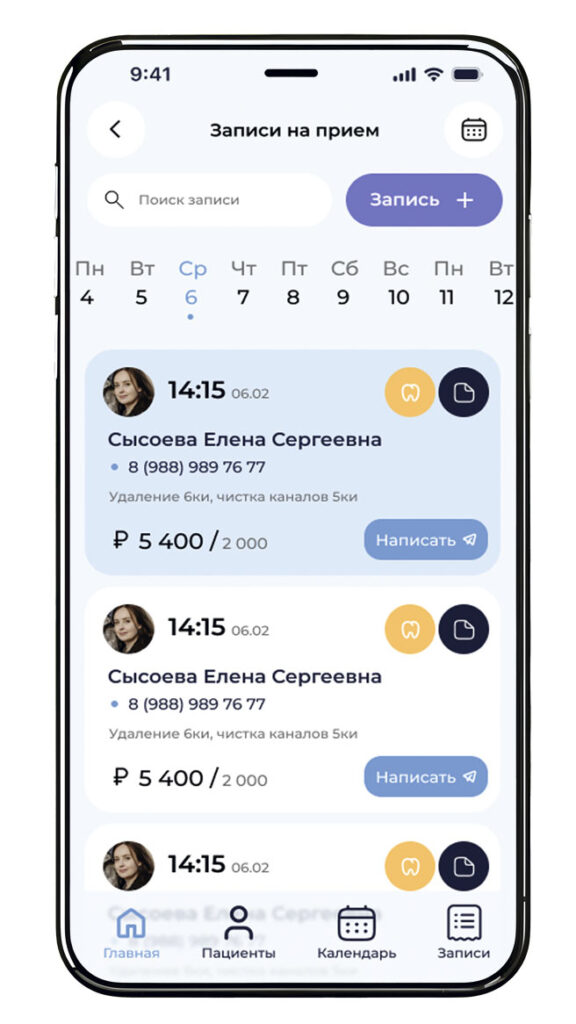 Календарь приемов в приложении «Одонта»